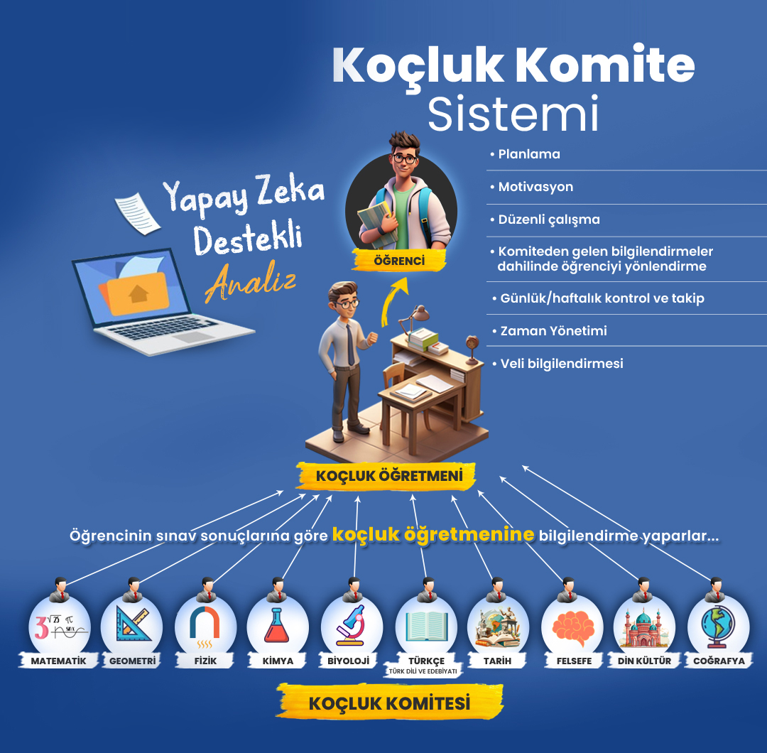 Öğrencinin deneme sınav sonuçlarına göre koçluk öğretmenleri detaylı bilgi verirler...